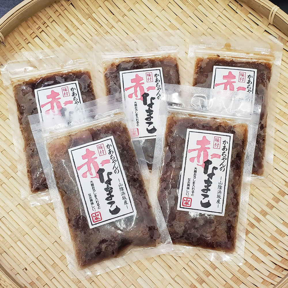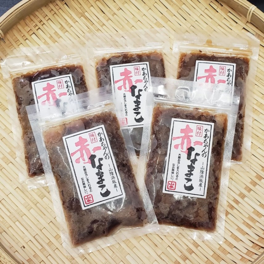 山米の赤なまこポン酢漬け(冷凍)1パック(山陰沖産)自家製一番ダシ入り特製ポン酢使用。減塩ですっぱ過ぎない味付けです。 (赤ナマコ、ポンズ、減塩)