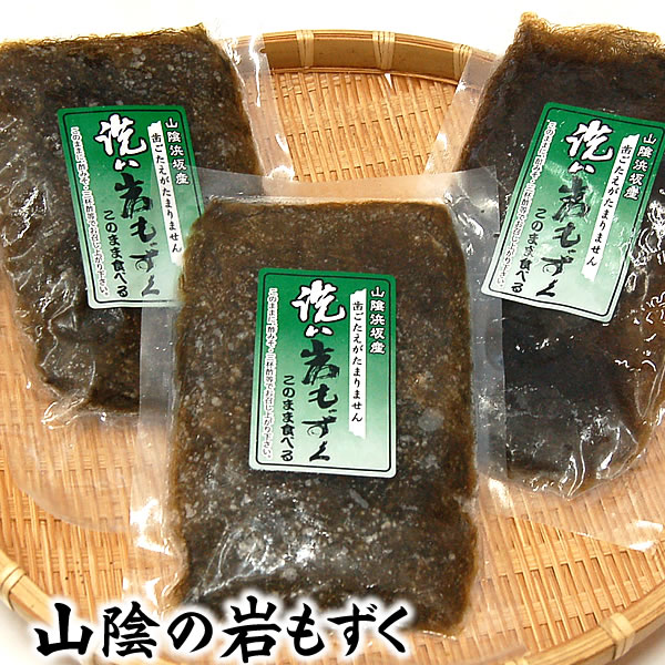 | 商品内容 | 浜坂産 岩もずく(冷凍)約100g×5袋 ※天然岩もずくを水洗い処理したものです。 塩抜き不要、解凍後味付けしてお召し上がりいただけます。 |