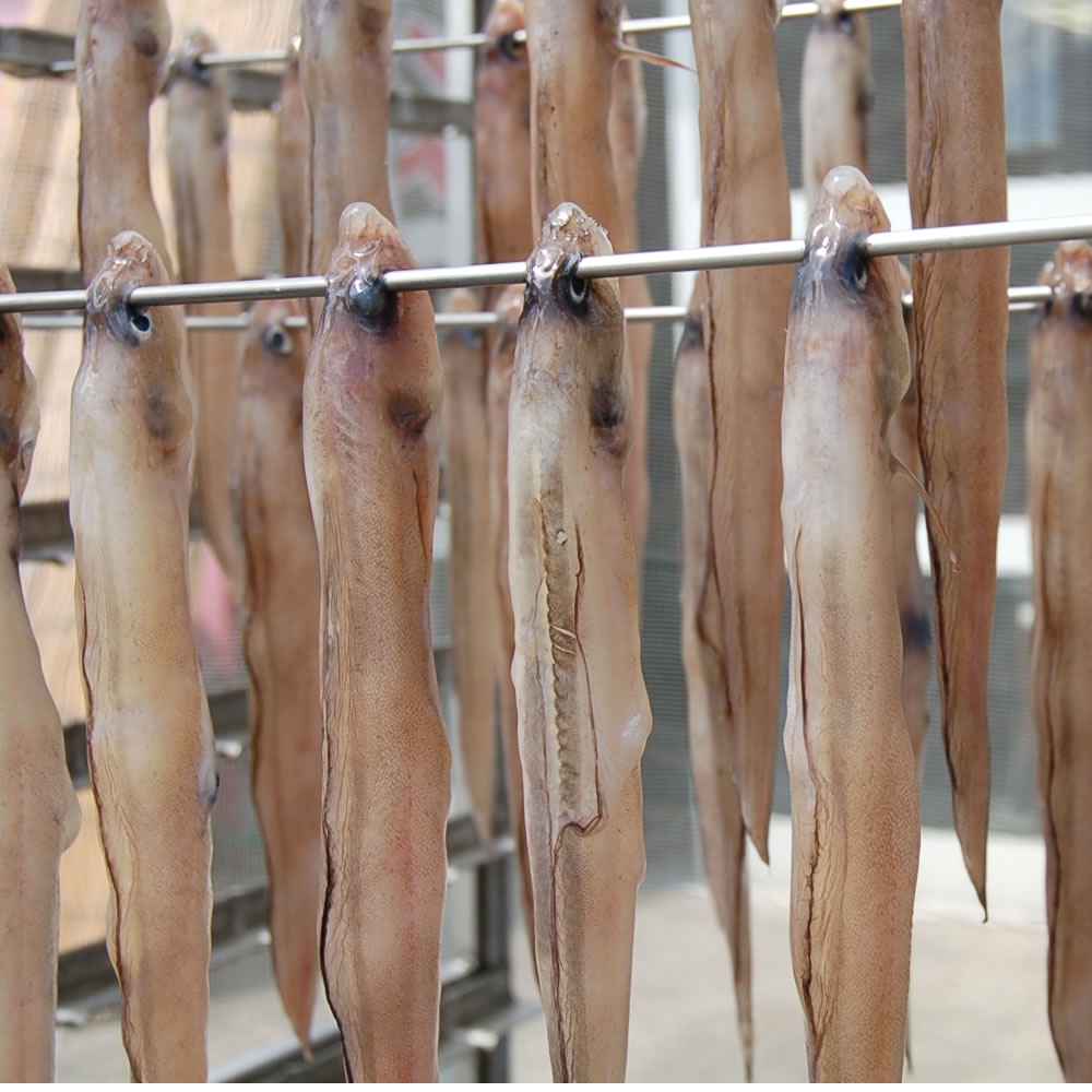 このとりたての鮮度のいいドギを天日干ししました。