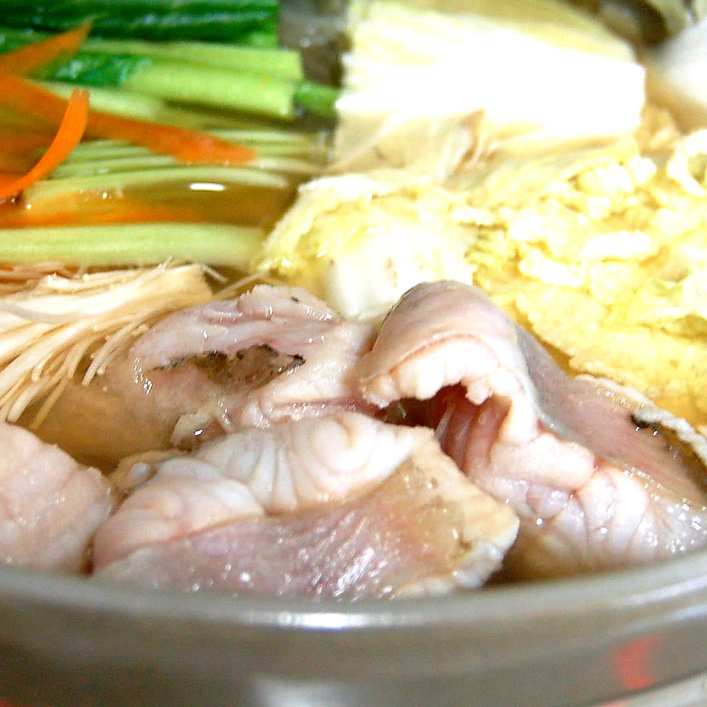 (表面のぬめりを包丁でよくこそいで、湯引きします)