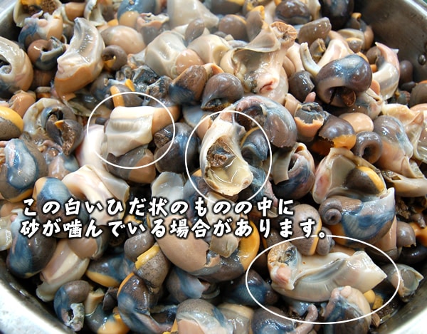 | 商品内容 | 浜坂産 ボイルバイ貝・肝(冷凍)約150g ※ボイル済 ※赤バイ貝または白バイ貝使用 ※バイ貝は海底にいるもので、部分によって、砂をかんでいる場合がありますので、その部分はよく洗ってお召し上がりください。 |
