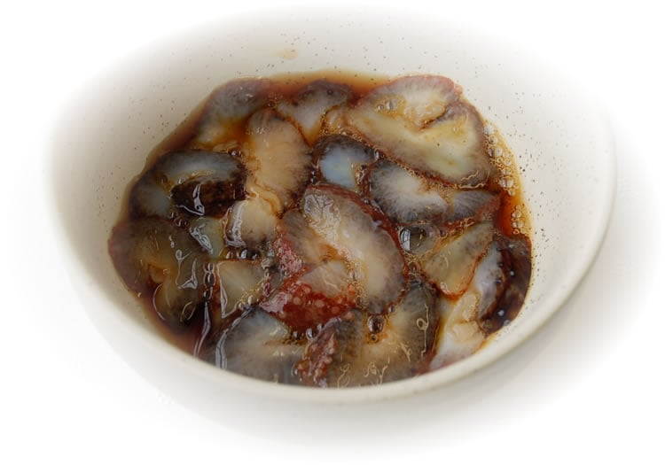 | まず、ナマコの両端を切り落とし、お腹を開けます。 ↓ 内臓を取り除きぬめりを取るために塩もみをします。 ↓ 塩を洗い流し、半分に切って薄切りにします。 ↓ ポン酢や三杯酢などに漬けお召し上がりください。 |