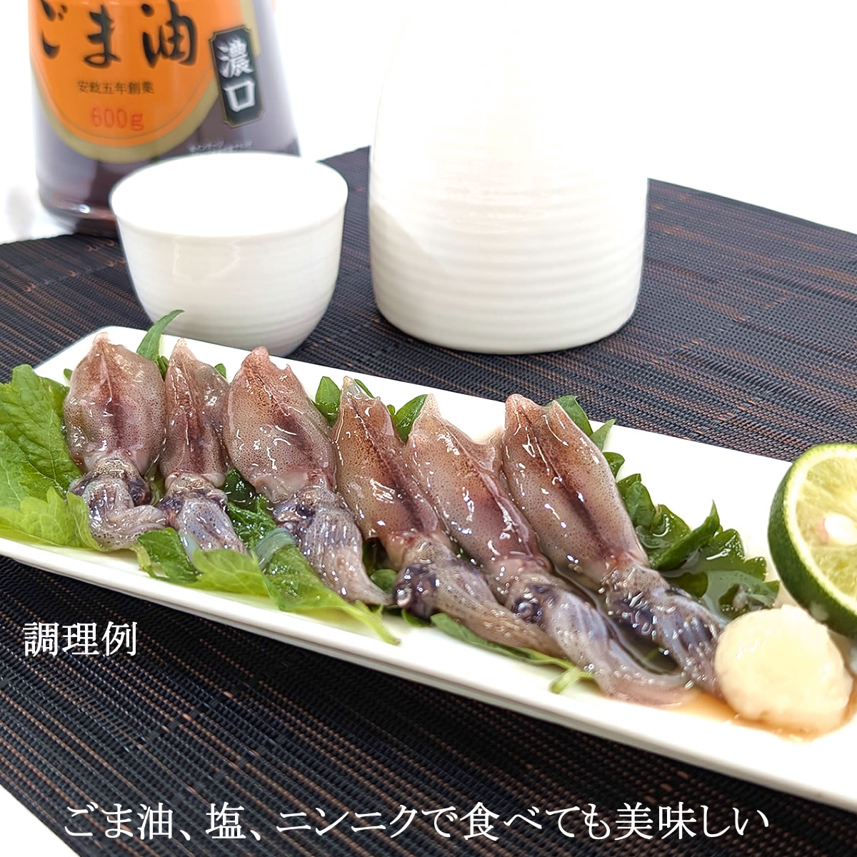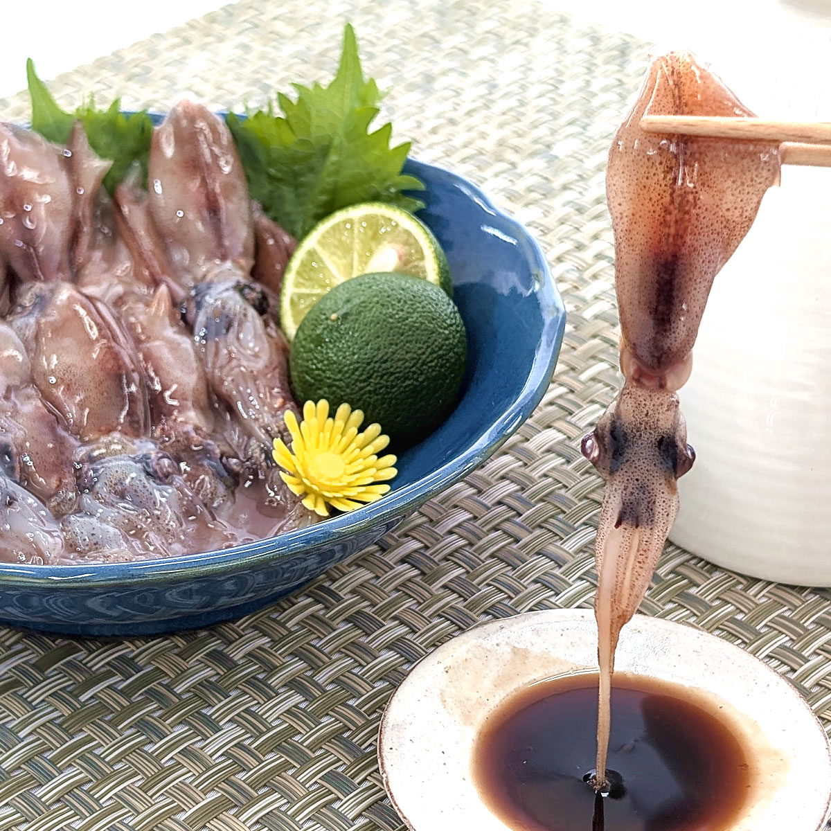 | お召し上がり方 | 流水で一気に解凍後、お刺身または茹でてどうぞ。 茹でたホタルイカを、わさび醤油やしょうが醤油または酢みそなどにつけて食べるのが一般的です。 その他、茹でたホタルイカを佃煮や唐揚・南蛮漬けにしたり、サラダなどに付け加えたり 他。 |