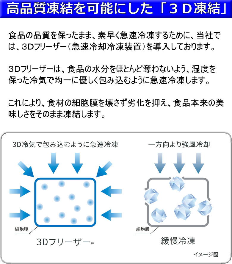 | 賞味期限 | 解凍前:冷凍保存で3ヶ月、解凍後:冷蔵保存で1日 |
